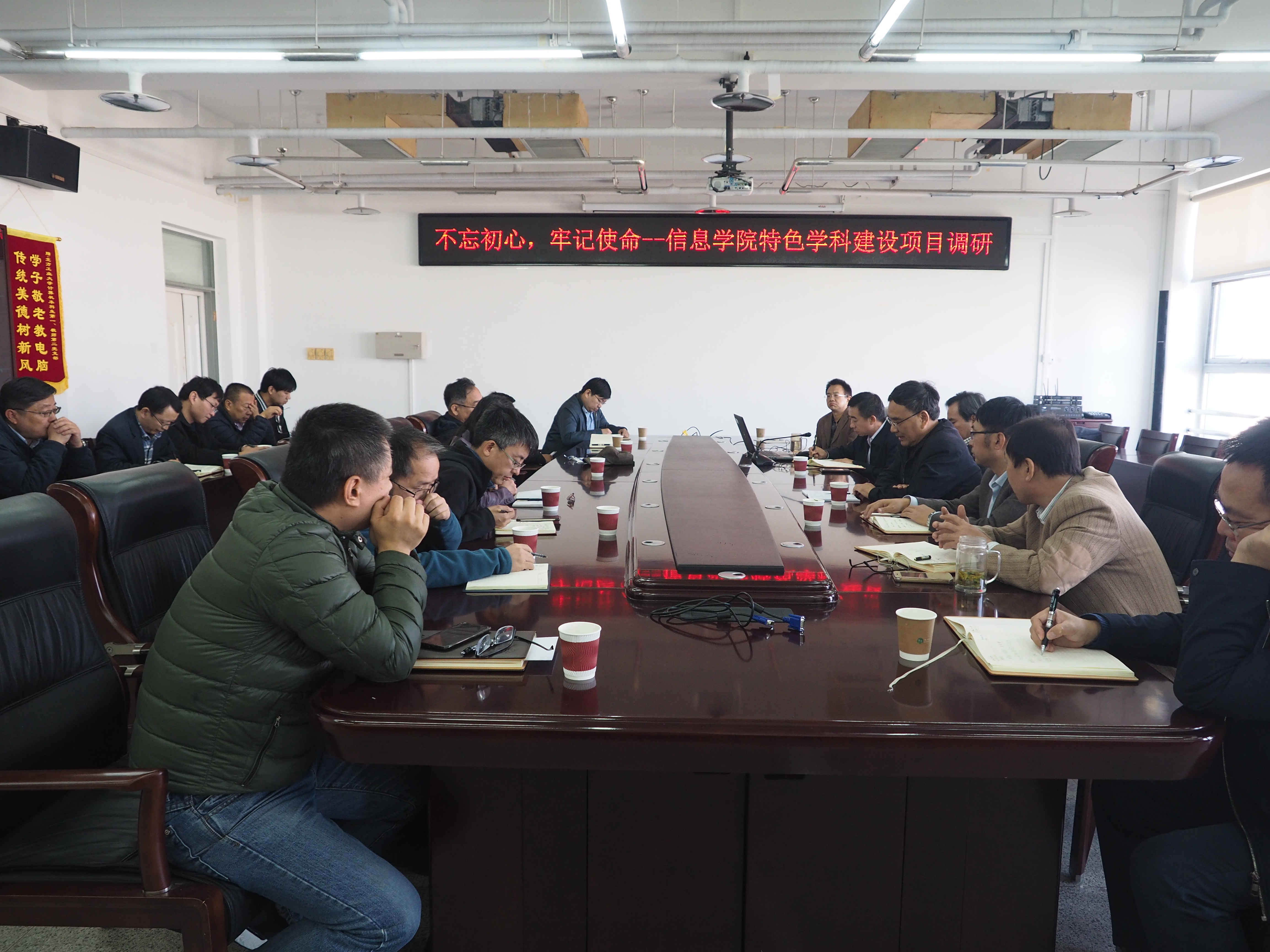 按照学校党委部署,10月29日下午,党委书记郑文堂、副校长王建稳、副校长柳长安一行到信息学院开展“不忘初心、牢记使命”主题教育调研。调研围绕特色学科建设展开,信息学院领导班子成员、责任教授、青年教师代表等20余人在瀚学楼1014会议室参加了调研,会议由学院院长马礼主持。