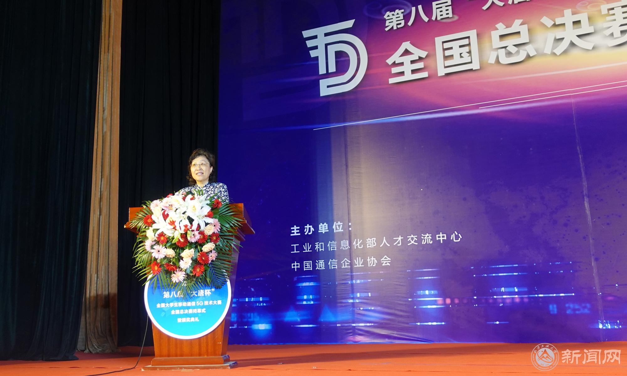 栗苹副校长出席闭幕式暨颁奖典礼并致词。她感谢全国兄弟院校对比赛的积极支持和热情参与,肯定了第八届大唐杯基于5G“真实设备、真实场景、真实问题”的特色,她表示贝博官网将始终支持产教融合的实践竞赛育人模式,并期待“以赛促教、以赛促学”的校企联合培养创新工程人才的方式再结硕果。