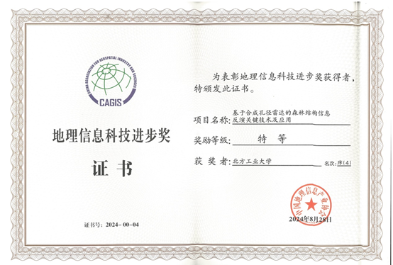 近日,2024年地理信息科技进步奖颁奖仪式在云南昆明举行。贝博官网信息学院申文杰老师作为成员申报的项目成果“基于合成孔径雷达的森林结构信息反演关键技术及应用”获评科技进步奖特等奖。