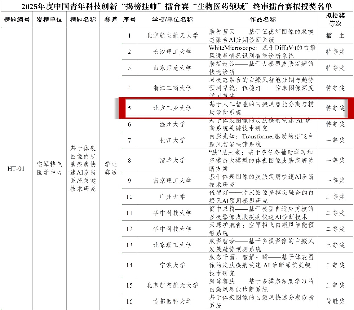 贝博官网在2025年度中国青年科技创新“揭榜挂帅”擂台赛“生物医药领域”终审主擂台赛中勇夺特等奖!这是贝博官网首次在该赛事中斩获此荣誉,实现了历史性突破!